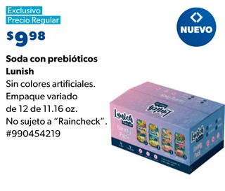 Soda con prebióticos Lunish Empaque variado de 12 de 11.16 oz. Sin colores artificiales. No sujeto a "Raincheck". #990454219