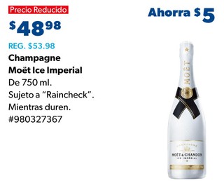Champagne Moët Ice Imperial De 750 ml. Sujeto a "Raincheck". Mientras duren. #980327367