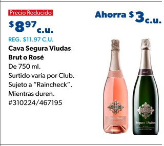 Cava Segura Viudas Brut o Rosé De 750 ml. Surtido varÃa por Club. Sujeto a "Raincheck". Mientras duren. #310224/467195