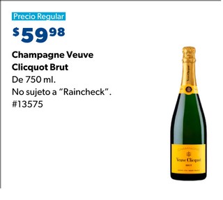 Champagne Veuve Clicquot Brut De 750 ml. No sujeto a "Raincheck". #13575