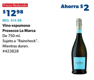 Vino espumoso Prosecco La Marca De 750 ml. Sujeto a "Raincheck". Mientras duren. #423828
