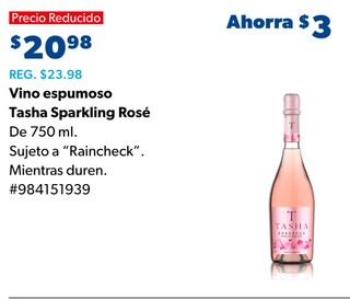 Vino espumoso Tasha Sparkling Rosé De 750 ml. Sujeto a "Raincheck". Mientras duren. #984151939