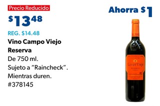 Vino Campo Viejo Reserva De 750 ml. Sujeto a "Raincheck". Mientras duren. #378145