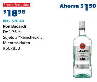 Ron Bacardà De 1.75 It. Sujeto a "Raincheck". Mientras duren. #507853