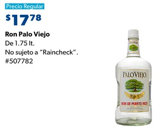 Ron Palo Viejo De 1.75 It. No sujeto a "Raincheck". #507782