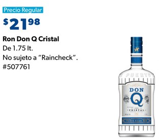 Ron Don Q Cristal De 1.75 It. No sujeto a "Raincheck". #507761