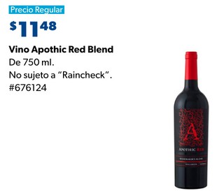 Vino Apothic Red Blend De 750 ml. No sujeto a "Raincheck". #676124