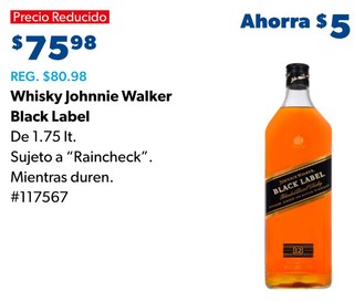 Whisky Johnnie Walker Black Label De 1.75 It. Sujeto a "Raincheck". Mientras duren. #117567