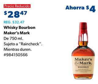 Whisky Bourbon Maker's Mark De 750 ml. Sujeto a "Raincheck". Mientras duren. #984150566