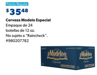 Cerveza Modelo Especial Empaque de 24 botellas de 12 oz. No sujeto a "Raincheck". #980207782