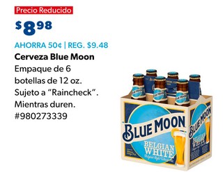 Cerveza Blue Moon de 6 botellas de 12 oz. Sujeto a "Raincheck". Mientras duren. #980273339 B