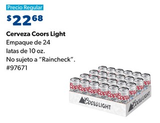 Cerveza Coors Light Empaque de 24 latas de 10 oz. No sujeto a "Raincheck". #97671