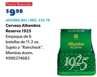 Cerveza Alhambra Reserva 1925 Empaque de 6 botellas de 11.2 oz. Sujeto a "Raincheck". Mientras duren. #990374683