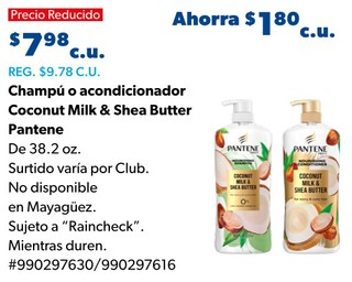 Champu o acondicionador Coconut Milk & Shea Butter Pantene De 38.2 oz.
