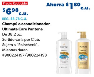 Champú o acondicionador Ultimate Care Pantene De 38.2 oz.
