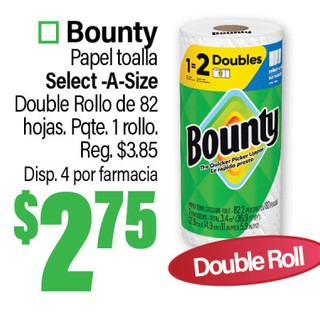 Bounty Papel toalla Select-A-Size Double Rollo de 82 hojas. Pqte. de 1 rollo