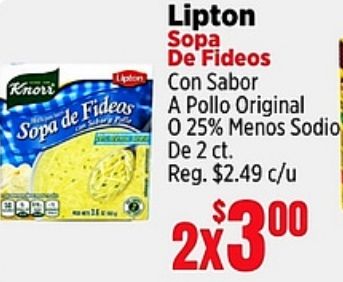 knowi lipton sopa fideos sabor pollo original sodio reg. $c/u