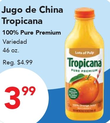 jugo china tropicana pure premium variedad reg. $lots pulp orange