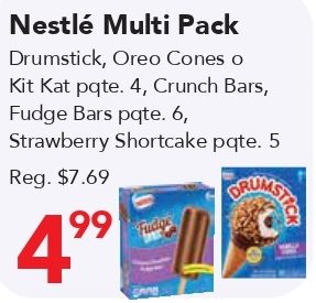 nestlé multi pack drumstick oreo cones pqte crunch bars, fudge bars pqte. strawberry shortcake reg. $fudge brums stick