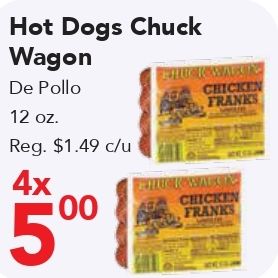 dogs chuck wagon pollo reg. $c/u chicken franks