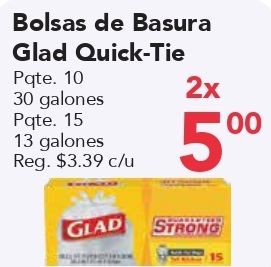 bolsas basura glad quick-tie pqte alones pqte. reg. $c/u strong