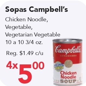 sopas campbell's chicken noodle vegetable, vegetarian vegetable campbells reg. $c/u condensed *chicken soup