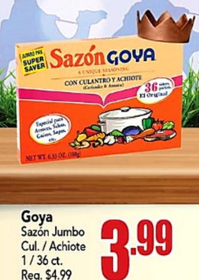 super saver unique seasoning culantro achiote sazón goya expecial caine sope (original jumbo cul/ /ct. reg.