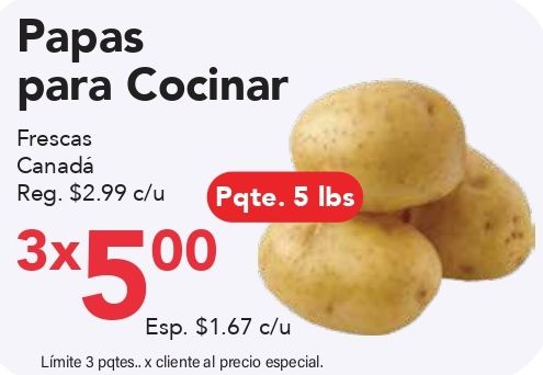 papas cocinar frescas canadá $c/u xpqte. esp. límite pqtes.. cliente precio especial.