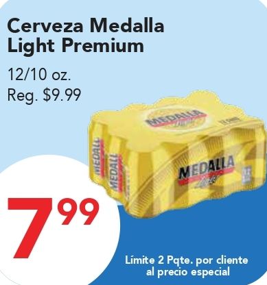 cerveza medalla light premium reg. medall lĂmite pqte. cliente precio especial
