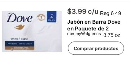 dove bars white blanc $c/u jabón barra paquete mywalgreens comprar productos