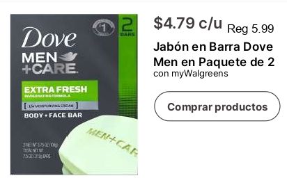 dove +care extra fresh /ong cream] body face dars men+car $c/u jabón barra paquete mywalgreens comprar productos