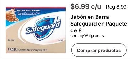 washes away bacteria safeguard $c/u jabón barra paquete walgreens comprar productos bars