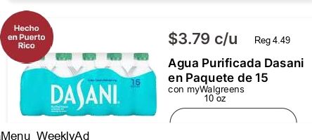 puerto rico dasani menu weeklyad $c/u agua purificada paquete mywalgreens