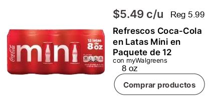 capo $c/u refrescos coca-cola latas mini paquete mywalgreens comprar productos
