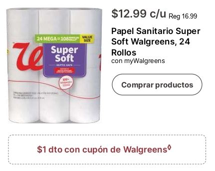 egasze value super soft $c/u papel sanitario walgreens rollos mywalgreens comprar productos $dto cupón
