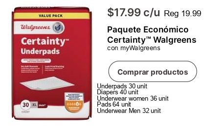 value pack walgreens certainty™ underpads $c/u paquete económico certainty mywalgreens comprar productos unit diapers underwear women pads