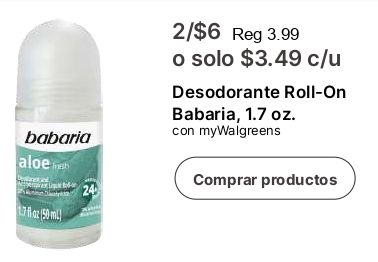 babaria aloe /$reg $c/u desodorante roll-on mywalgreens comprar productos