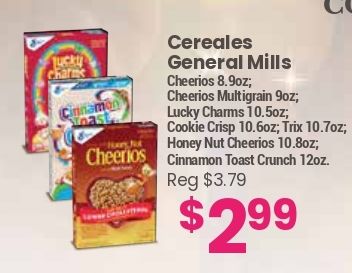 tuck charms cinnamon yoast cereales mills cheerios multigrain lucky cookie crisp trix honey toast crunch