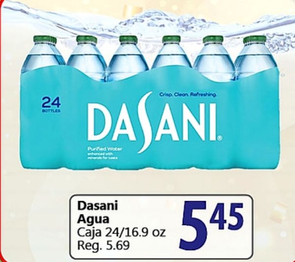 bottles crisp cleon. refreshing. dajani purified water dasani agua caja reg.