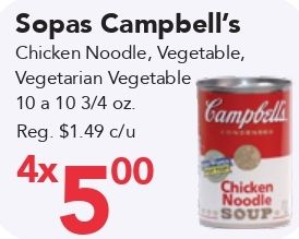 sopas campbell's chicken noodle vegetable, vegetarian vegetable reg. $c/u xcampbell soup