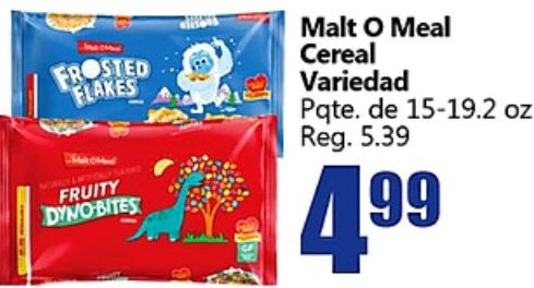frosted flakes fruity dyno-bites malt meal cereal variedad pqte reg.