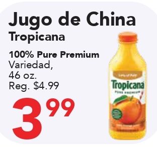jugo china tropicana pure premium variedad reg. $tropicana