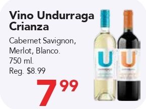 vino undurraga crianza cabernet savignon merlot, blanco reg.