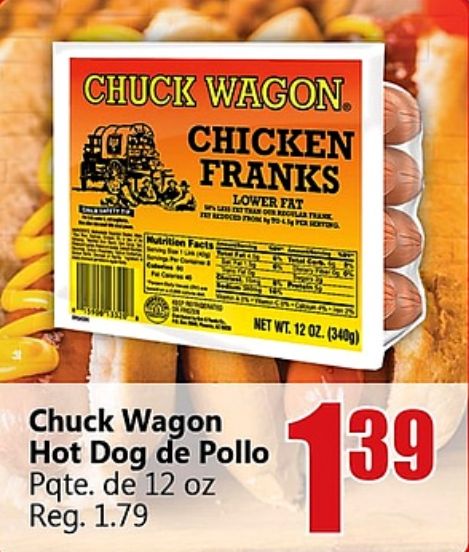 chuck wagon chicken franks lower wlst than regular frank reduced phone nutrition facts persons pollo pqte. reg.