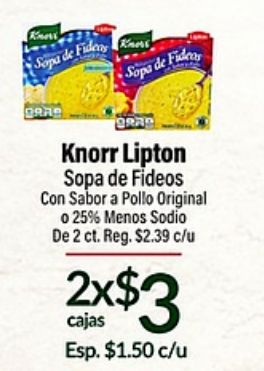kness sopa fides fideos grad knorr lipton sabor pollo original sodio reg. $c/u x$cajas esp.