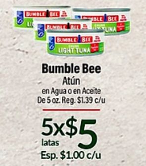 bumble suna light tuna atĂșn agua aceite reg. $c/u x$latas esp.