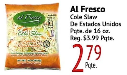 fresco cole slaw repelle combiando unidos pqte. reg. $pqte.