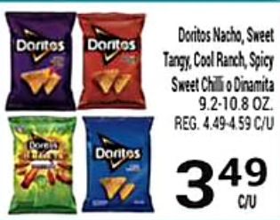 doritos dontos dorey nacho sweet tangy, cool ranch, spicy chilli dinamita reg.