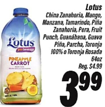 lotus china zanahoria mango, manzana, tamarindo, piña zanahoria, pera, fruit punch, guanábana, guava piña, parcha, toronja beverage rosada pineapple carrot