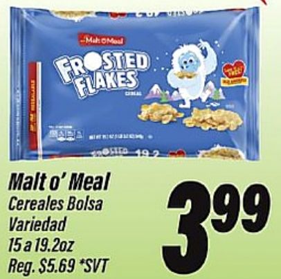 -mahomeal frosted flakes malt meal cereales bolsa variedad $*svt